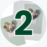 Sturdy 9" x 6" x 2" custom box (carefully packaged) & prepaid shipping label for sending cards