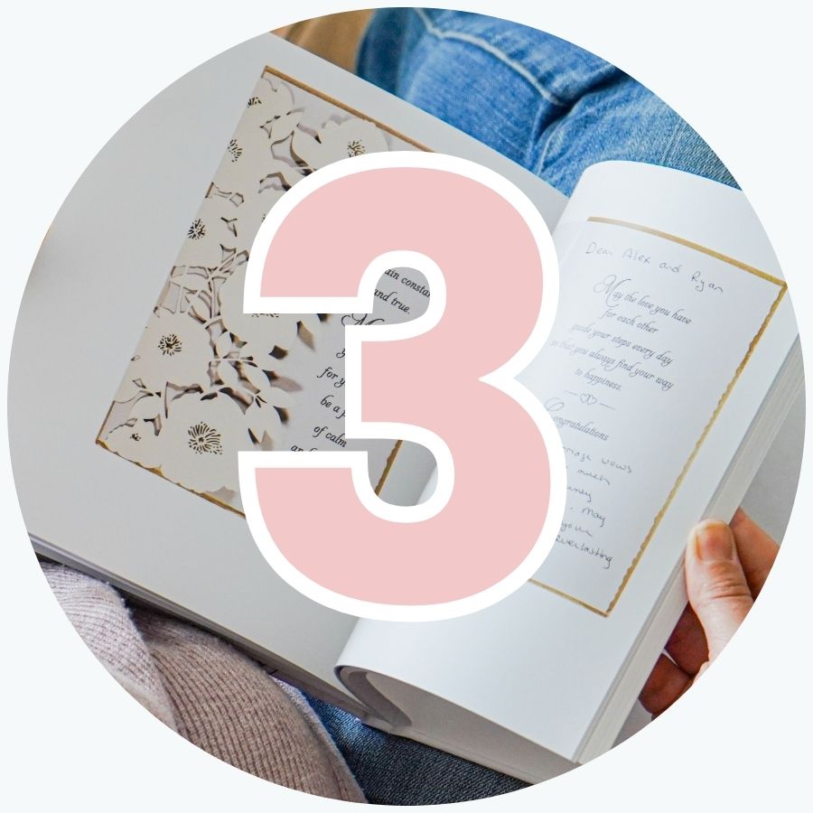 Your wedding cards are professionally photographed and edited. Then we'll create a book proof that you can add your wedding photos to, edit, and approve.