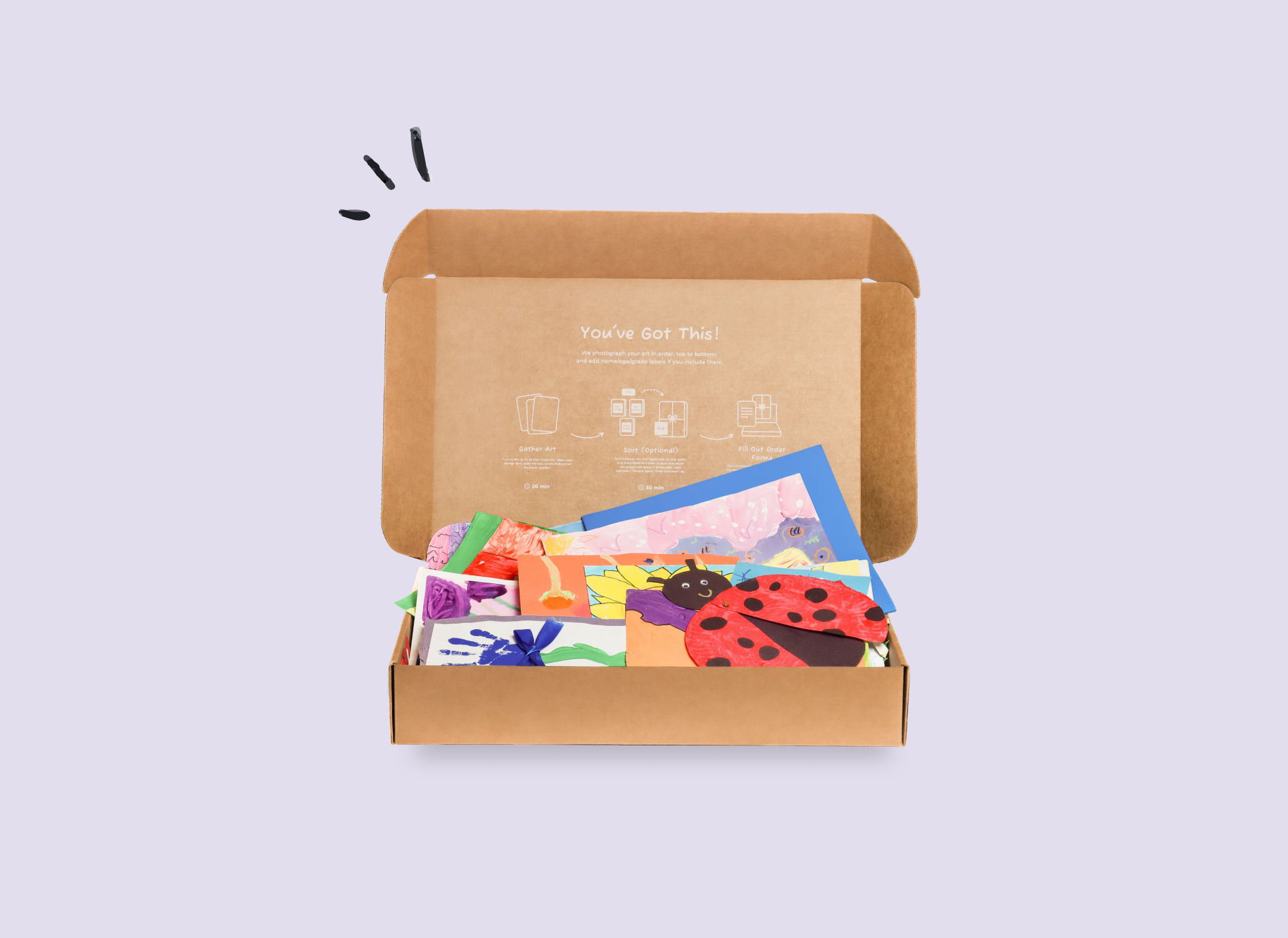 We'll send you a box to fill with all your favorite art pieces and an order form to select a Book, Mosaic, or both.