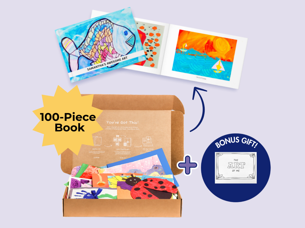 We'll send you a box to fill with 100 art or schoolwork pieces, and an order form to select your keepsake.