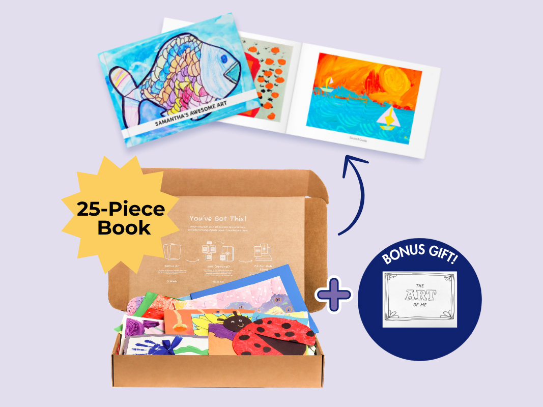 We'll send you a box to fill with 25 art or schoolwork pieces, and an order form to select your keepsake.